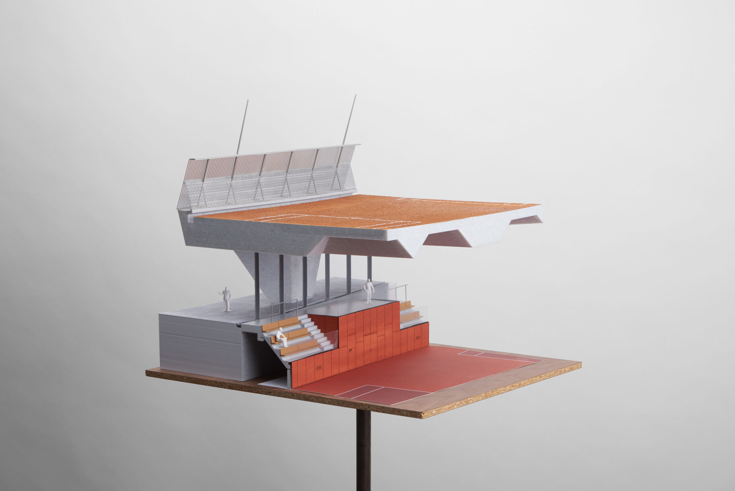 The modeling of the ground through gentle slopes and controlled terracing, together with the stacking of functional programs in section, work towards an integrated, topographical solution that minimizes the visual impact of the intervention and mediates the 00m change in grade from the Isarco riverside to Milland at the level of Sarnser street (Sarnserstrasse). By positioning the voluminous sports programs within the interstitial space of the slope, the groundscape is freed up, thereby allowing for larger tree species to be planted. Vehicular access and all of the parking is relegated either to the borders of the site or below grade, which, when combined together with the activation of the tennis, ice-hockey and yoseikan budo rooftops, allows for the whole site to be given over to the community as an open park.